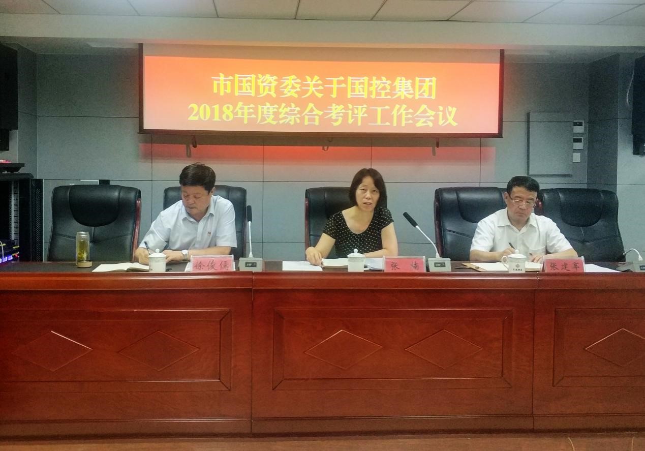 2019年7月18日,市国资委关于国控集团2018年度综合考评工作会议在集团公司本部第一会议室召开,会议由市国控集团总经理徐俊儒主持,董事长张建军做《2018年度工作完成情况的报告》,市国资委党委委员、副主任张楠出席会议并讲话,集团公司本部及资产运营公司全体员工参加。