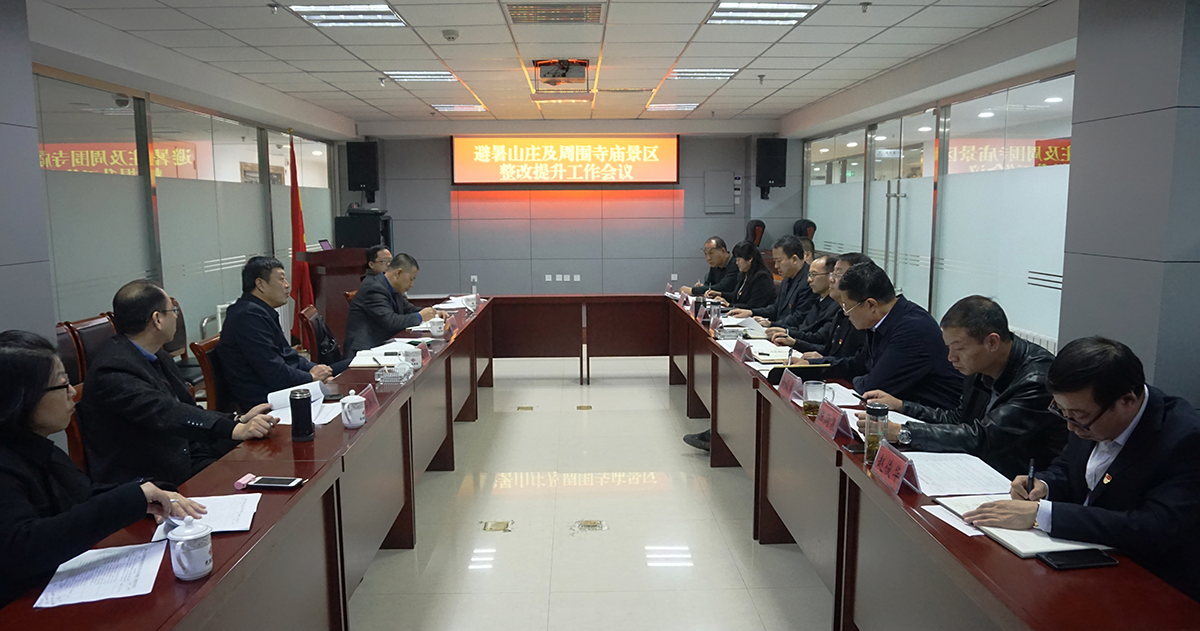 会上,市政府副市长崔万峰同志听取了市旅游和文化广电局调研员李金龙同志就避暑山庄及周围寺庙景区整改提升工作情况的介绍和市国控集团下属智能停车场公司执行董事胡杰同志就整体工作中涉及该公司管理的景区周边停车场的整改提升工作进展情况的介绍。