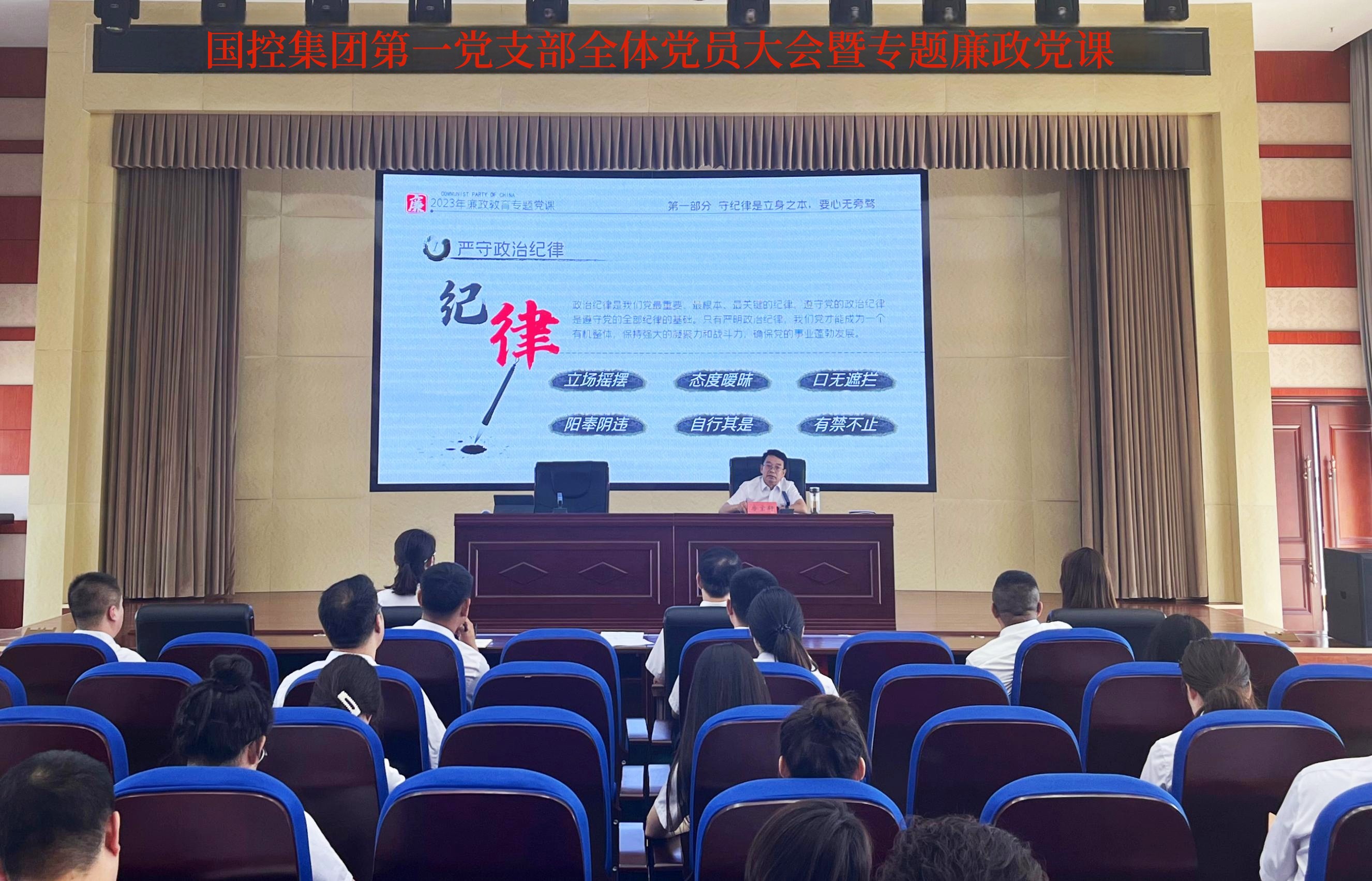6月16日上午,国控集团第一党支部召开全体党员大会暨专题廉政党课。集团公司党委书记、董事长张建军出席会议并作廉政党课。党委委员、纪委书记房宝轩主持会议并作廉政党课,一支部全体党员参加了会议。