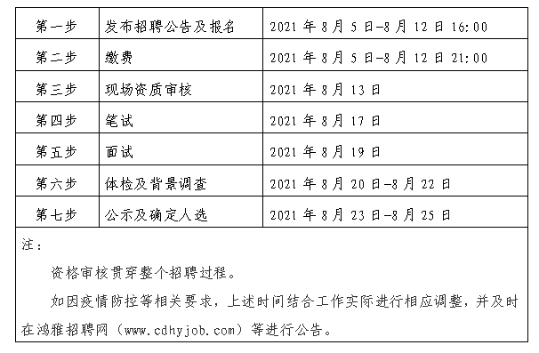 2021年8月5日至 2021年8月12日16:00 在鸿雅招聘网(http://www.cdhyjob.com/)、鸿雅微信公众号、国控集团官方网站等发布招聘公告。